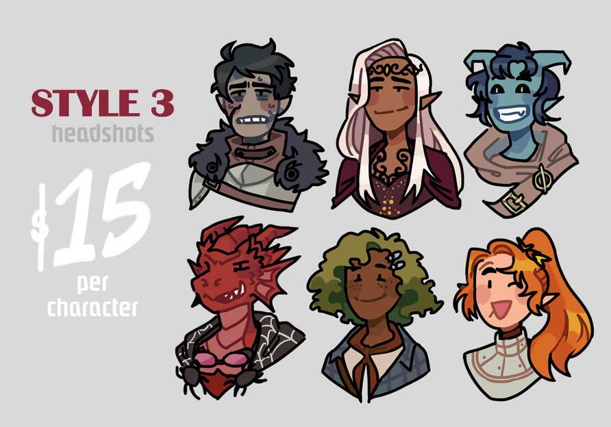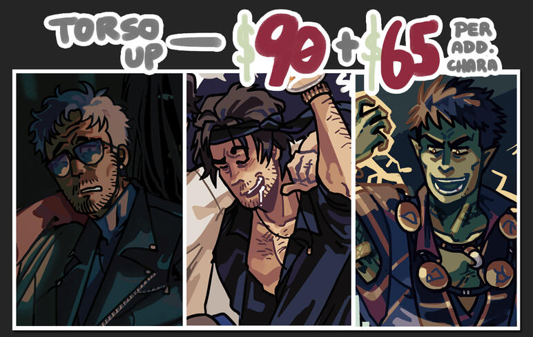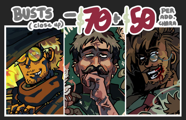all are $10 off coloured pricesBUSTS - $60 // +$40 per additional character